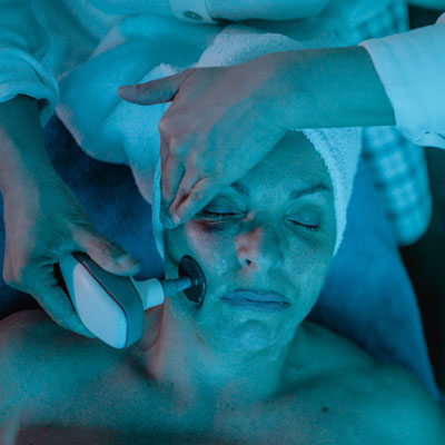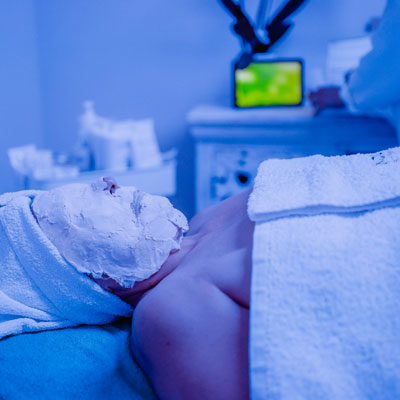 Tratamiento para el acné medio y sus problemas inflamatorios. La luz azul es fría y ayuda a mitigar las lesiones y bajar la inflamación. Penetra la piel y produce un radical de oxígeno que destruye la bacteria causante del acné. Cuando la luz es absorbida por la bacteria se destruye disminuyendo la inflamación y enrojecimiento.